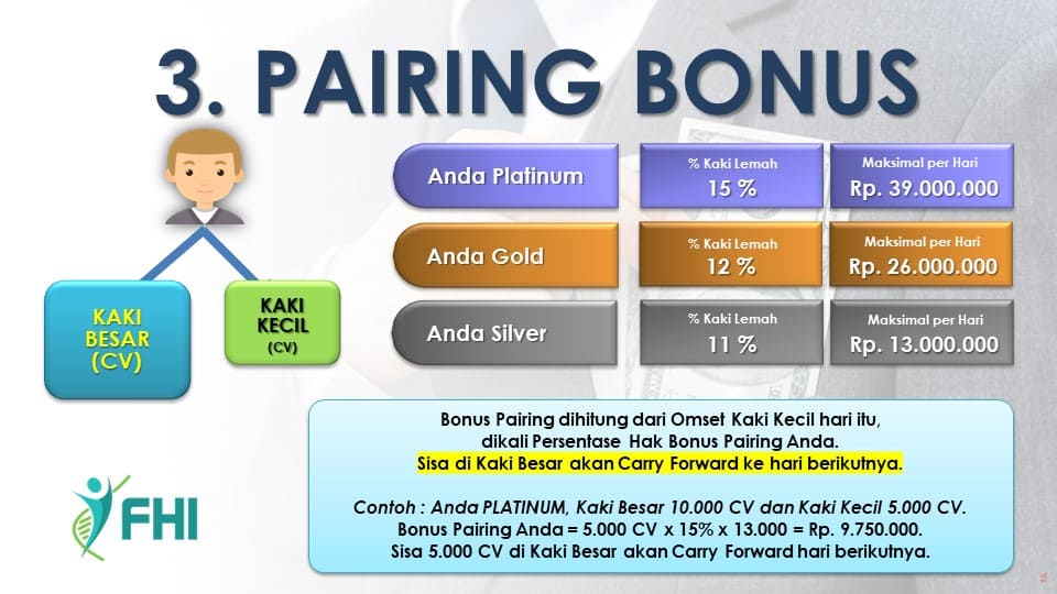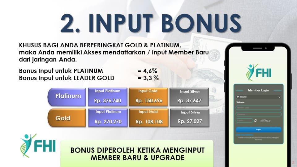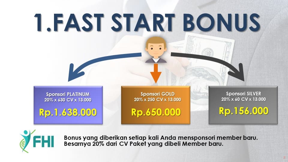 Saat Anda bergabung dengan FHI, Anda berhak mendapatkan semua bonus tanpa syarat selama 12 bulan (365 hari).